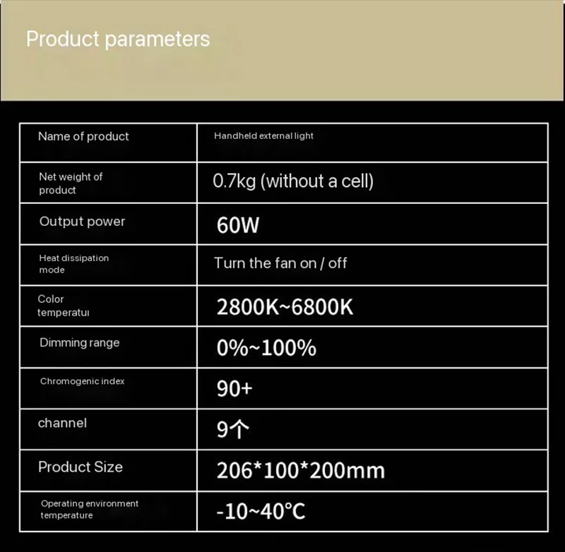 $58,00Añadir al carritoProduct description Previous page Next page Powerful 40W Lighting Efficient Cooling System Previous page Next page Top About this item Similar Questions Product information Reviews What’s in the box 40W Camera Light*1 Cold Shoe Mount*1 Soft Light Diffuser*1 Mini Tripod*1 Type-C Charging Cable*1, User Manual*1 Product Videos No spoken audio –0:42